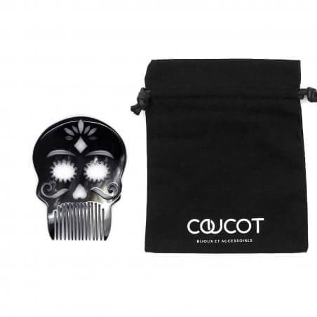 Julie, la créatrice, a travaillé une série de peignes autour de la thématique des Calaveras (crâne). La calavera Tête de mort est une pièce de cette série de 6 peignes. Ce peigne à barbe représente le Calavera (crâne Mexicain), symbole de la "Dia de los muertos" qui est une fête instaurée en 1920 célèbrant les défunts.