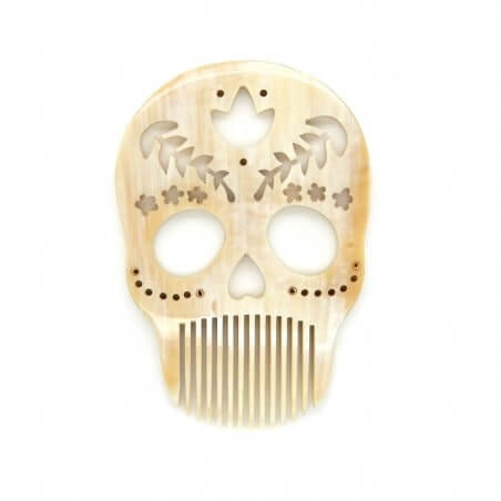 Julie, la créatrice, a travaillé une série de peignes autour de la thématique des Calaveras (crâne). La Calavera Nature est une pièce de cette série de 6 peignes. Ce peigne représente le Calavera (crâne Mexicain), symbole de la "Dia de los muertos" qui est une fête instaurée en 1920 célèbrant les défunts.