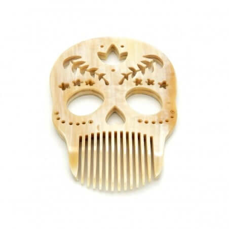Le peigne en corne Calavera Nature est le peigne à barbe pour tout barbu tatoué en quête d'une barbe clean.