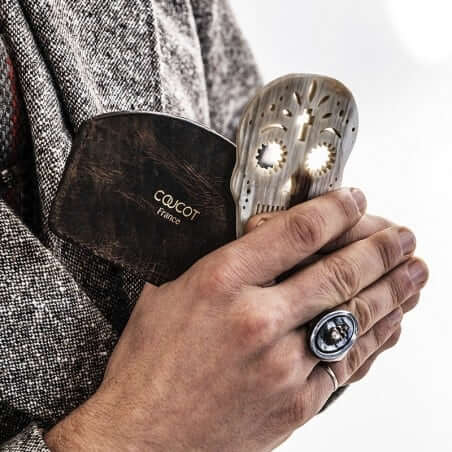 Détails et dimensions : 9*6,7 cm. Il possède 13 dents, hautes de 3 cm et d'écartement 1,2 mm. Poids : 25 g. Votre peigne à barbe est livré dans une pochette en coton accompagné d’un certificat d’authenticité ainsi que de nos conseils d'utilisation.