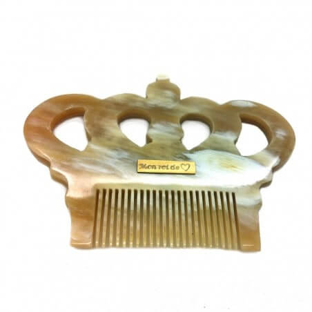 Julie, la créatrice, a travaillé ce peigne en corne en forme de couronnne impériale à l'image du barbier Bruxellois "Bayer and Bayer" dont l'enseigne est une couronne.