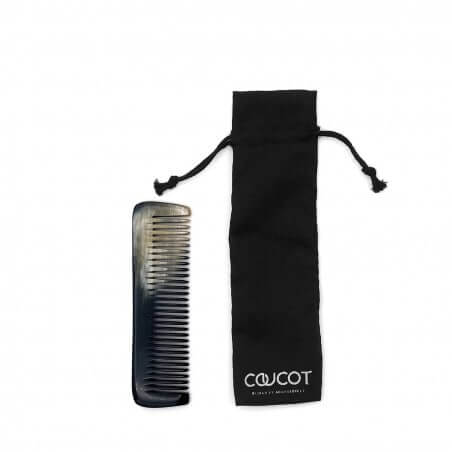 Détails et dimensions : 11,5*3 cm, il possède 38 dents, hautes de 1,8 cm. Votre peigne en corne est livré dans une pochette en coton et accompagné d’un certificat d’authenticité et de nos conseils d'utilisation.
