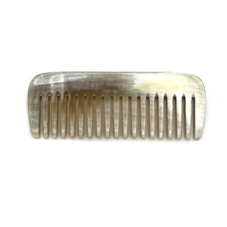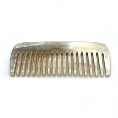 Contrairement au peigne en plastique, le peigne en corne ne crée pas d’électricité statique. Il est enrichi en kératine, molécule nécessaire à la bonne santé du cheveux. L’utilisation régulière de votre peigne en corne rendra vos cheveux homogènes et soyeux.