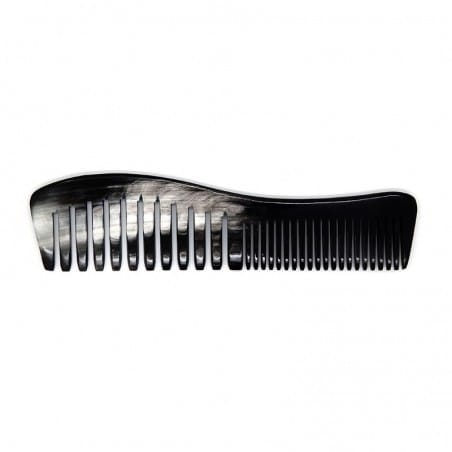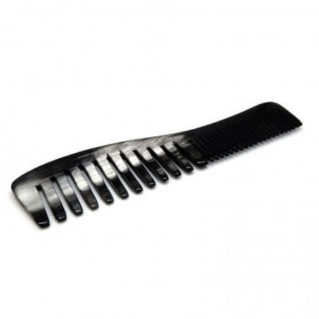 Détails et dimensions: 19,5*5 cm, il possède 32 dents, hautes de 3,8 cm et d'écartement 2 mm et 5,5 mm. Votre peigne en corne est livré dans une pochette en coton accompagné d’un certificat d’authenticité ainsi que de nos conseils d'utilisation.